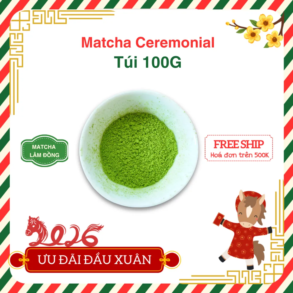 Matcha Ô Long Ceremonial 100g từ Bảo Lộc – bột matcha cao cấp chuẩn nghi lễ, vị umami ngọt hậu, ít đắng, màu xanh sáng. Phù hợp uống nguyên bản, latte và lifestyle healthy.